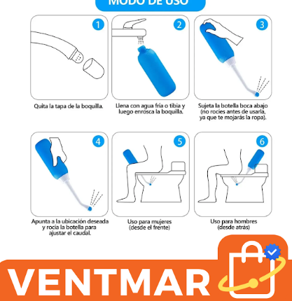La botella bidet portátil de 500 ml permite realizar higiene íntima de forma práctica en casa o durante viajes. Su boquilla inclinada facilita la aplicación del agua con mayor comodidad y control.